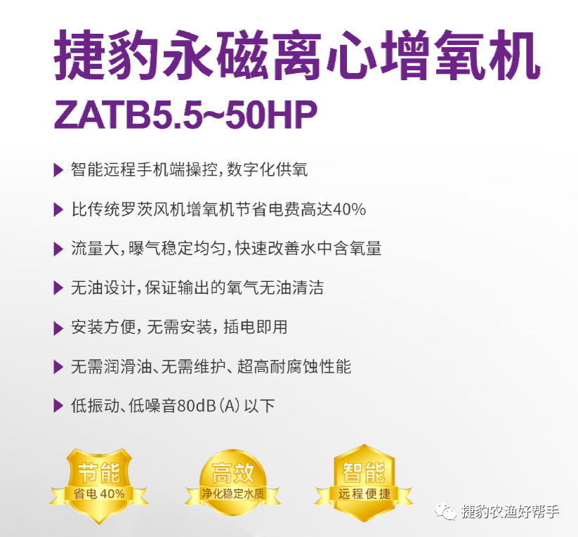 捷豹永磁離心增氧機,能夠為給養(yǎng)蝦池源源不斷的提供空氣,保證池內充足的溶解氧,相比老式的羅茨增氧機效率更高,噪音更低。